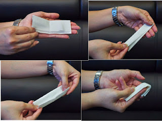 - Sebagian tisu disimpan kembali di dalam sachetnya supaya tidak kering. Kemudian, yang sebagian lagi lipat menjadi 2